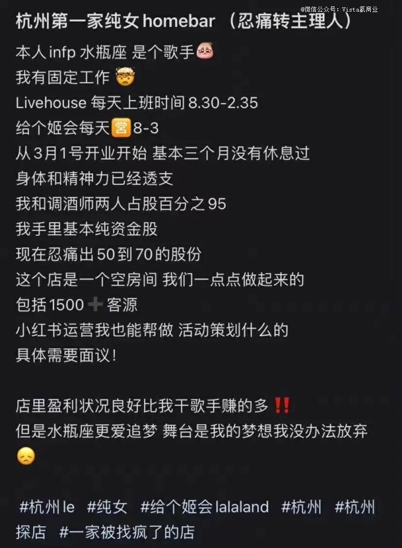 因谋划不佳歇业的homebar不在少数,另有一些由于扰民遭到邻人举报。在这条赛道赚大钱,比斜杠青年和裸辞er想的要难不少。