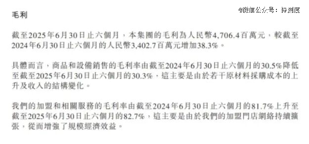 表面上看这项成绩相当亮眼,可同期的毛利增速仅为38.3%。在企业规模扩大的情况下,规模效应凸显,单位成本下降,毛利增长应该高于营收增速,但蜜雪冰城的核心业务“商品和设备销售”的毛利率却从2024年的30.5%掉到了30.3%。这意味着繁荣背后的利润问题仍然有些局促。