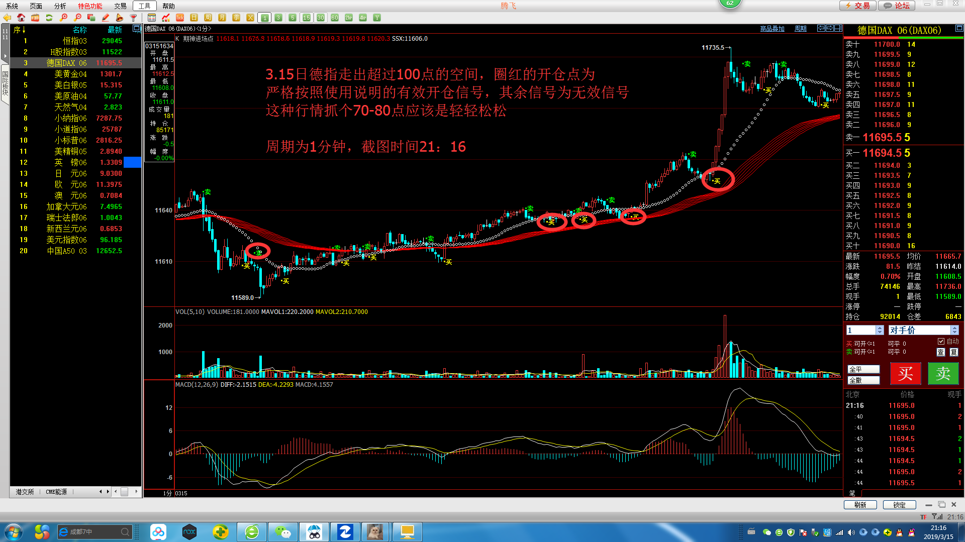 3.15日德指片段行情爆发,软件出现精准出现提示!