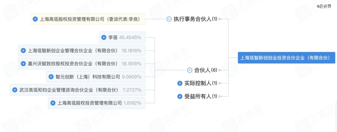 信息显示,上海瓴智新创创业投资合伙企业(有限合伙)成立于2025年7月,出资额已增至5500万元,经营范围包含:创业投资(限投资未上市企业),执行事务合伙人是上海高瓴股权投资管理有限公司,高瓴创始合伙人李良为委派代表。