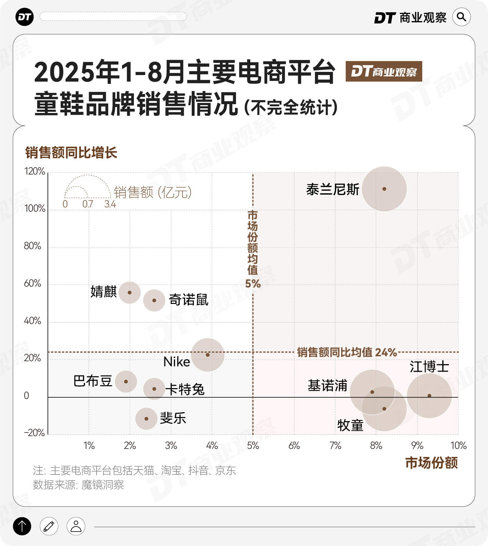 这句在电梯里循环播放的广告词,可能已经成为无数人的“听觉记忆”,凭借强势的线下曝光,泰兰尼斯硬生生在童鞋赛道炸出一片天。