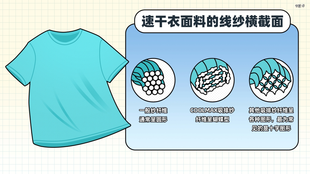 聚酯纤维虽然不吸水,但只要把纤维做成吸管状或者十字纹。汗就顺着纤维的缝隙槽流到衣服表面,快速挥发掉了。